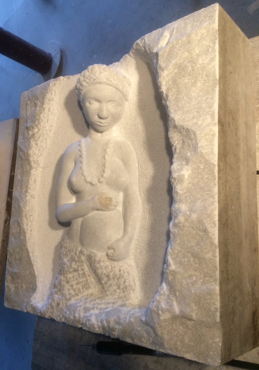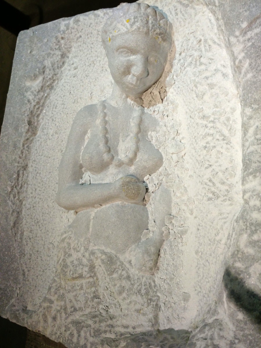 Das erste Mal im Lauf der gesamten Zeit, die die Bildhauer Schule Barnitz besteht, hat es eine Kursteilnehmerin gewagt in klassischer Art, eine Figur in Stein, mit Hilfe eines Punktiergeräts zu übertragen und auszuarbeiten. Hier nun die Entstehung und Umsetzung.