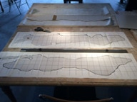 Am heutigen Tag wird die Oberfläche nachgeschliffen, dann die quadratische Einteilung aufgebracht und mit der Ausarbeitung der seitlichen Ansicht begonnen. Siehe dazu die Zeichnung.