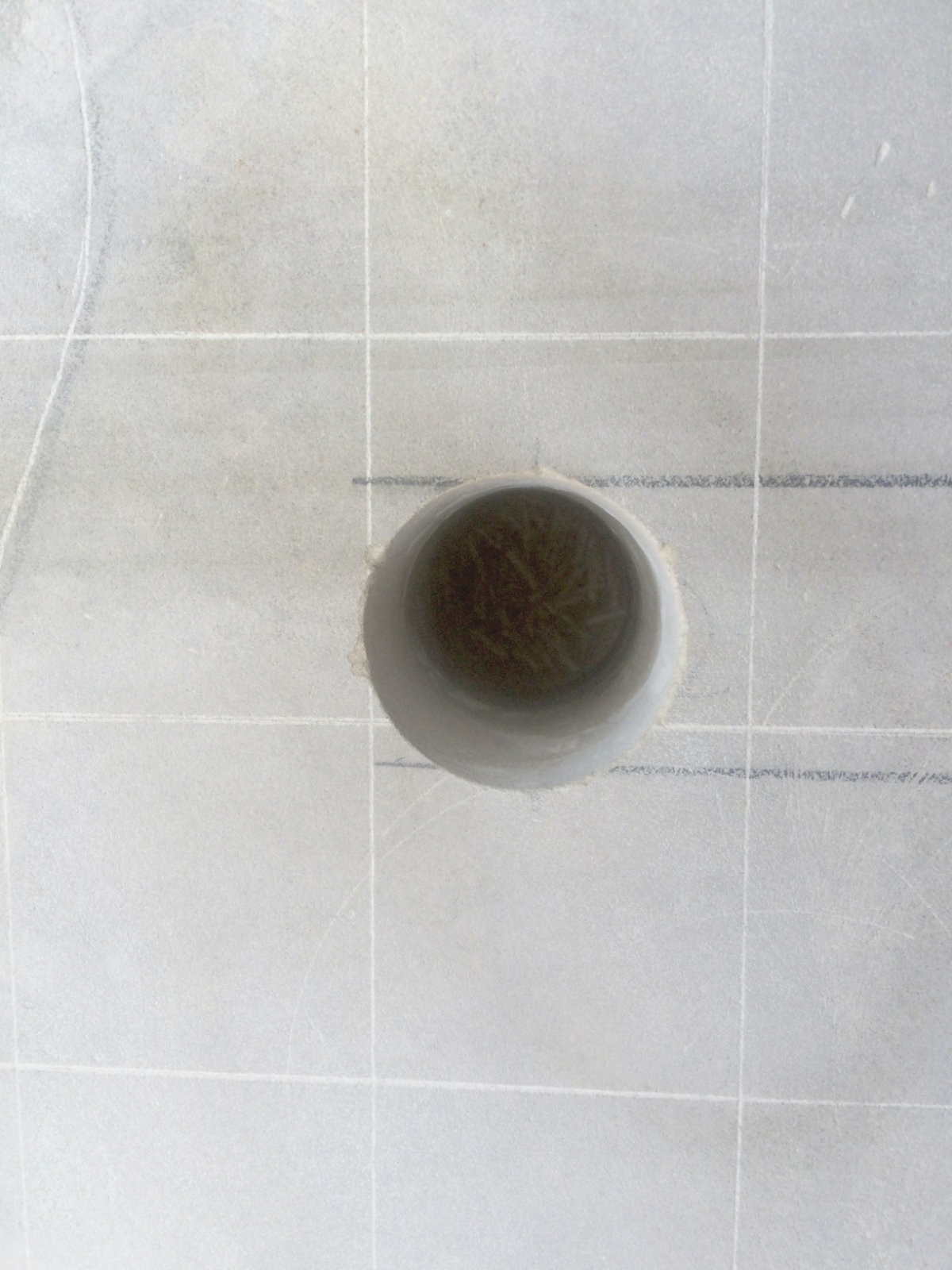 Die Fläche ist geschliffen und die Quadrate aufgezeichnet.