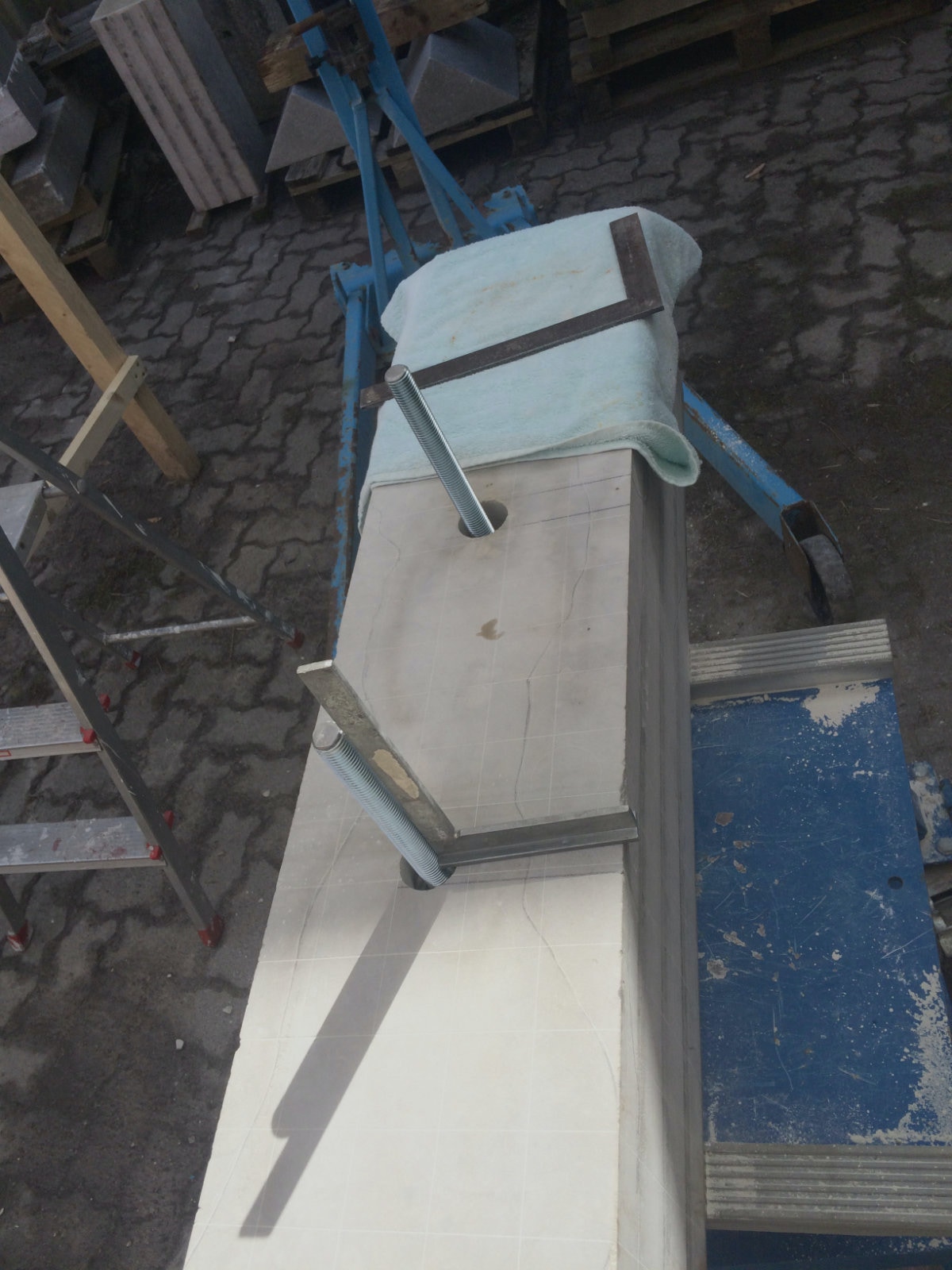 Ich werde also heute zuerst zwei Sechskant Gewindemuffen in den Stein einbauen mit einem M 20 Innengewinde. Diese in Verbindung mit einer sicheren Stahlkonstruktion müsste das spätere Gewicht, das geschätzt bei 100 bis 110 kg liegen wird gut tragen können.