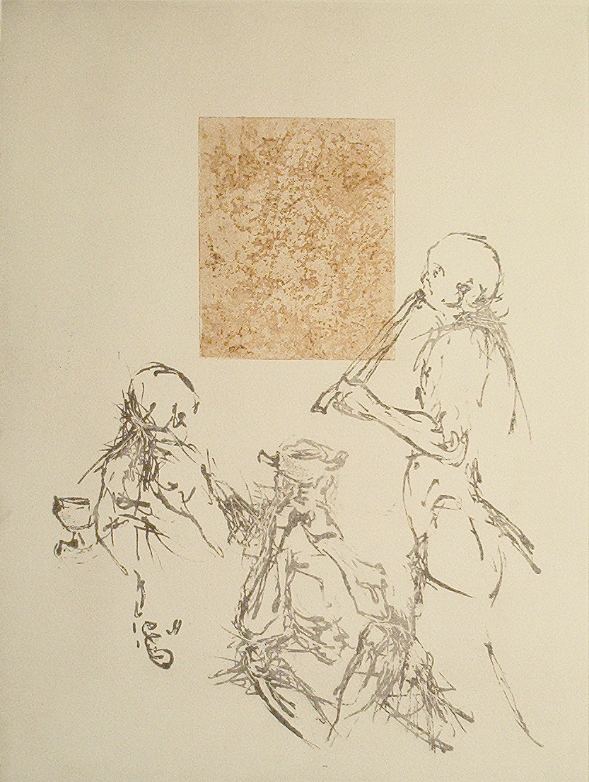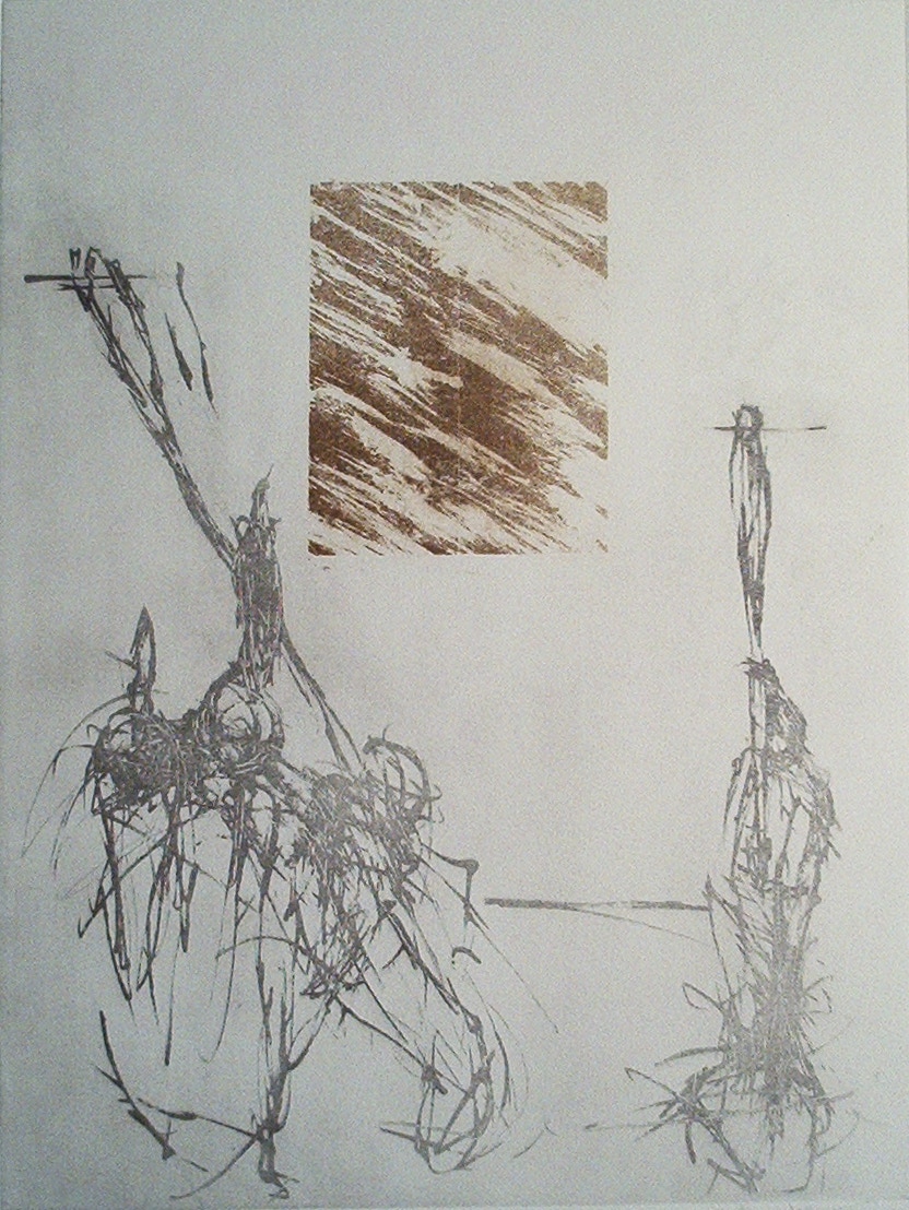 Strichätzung, Aquatinta, Reservage, von zwei Platten, 2002