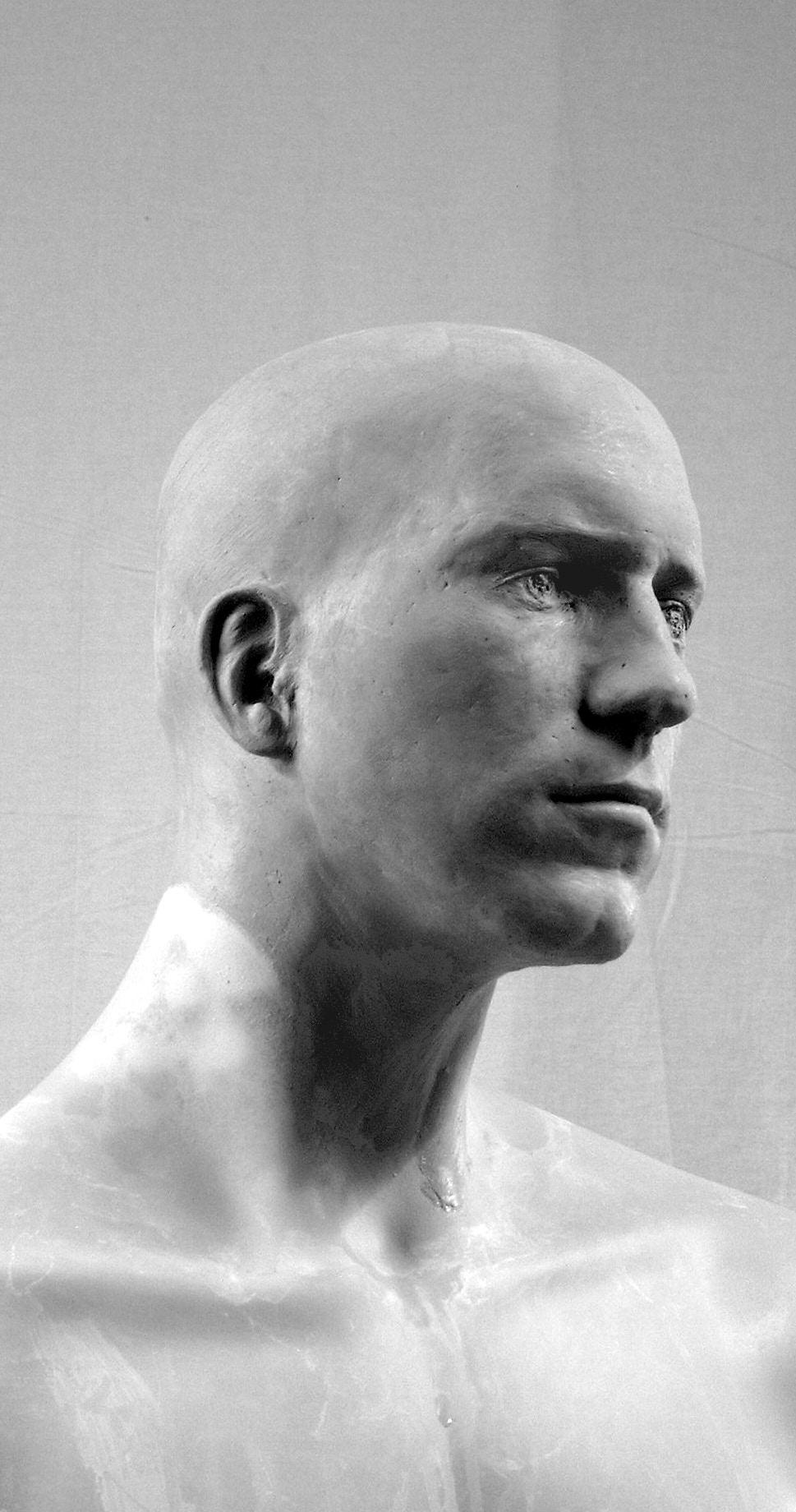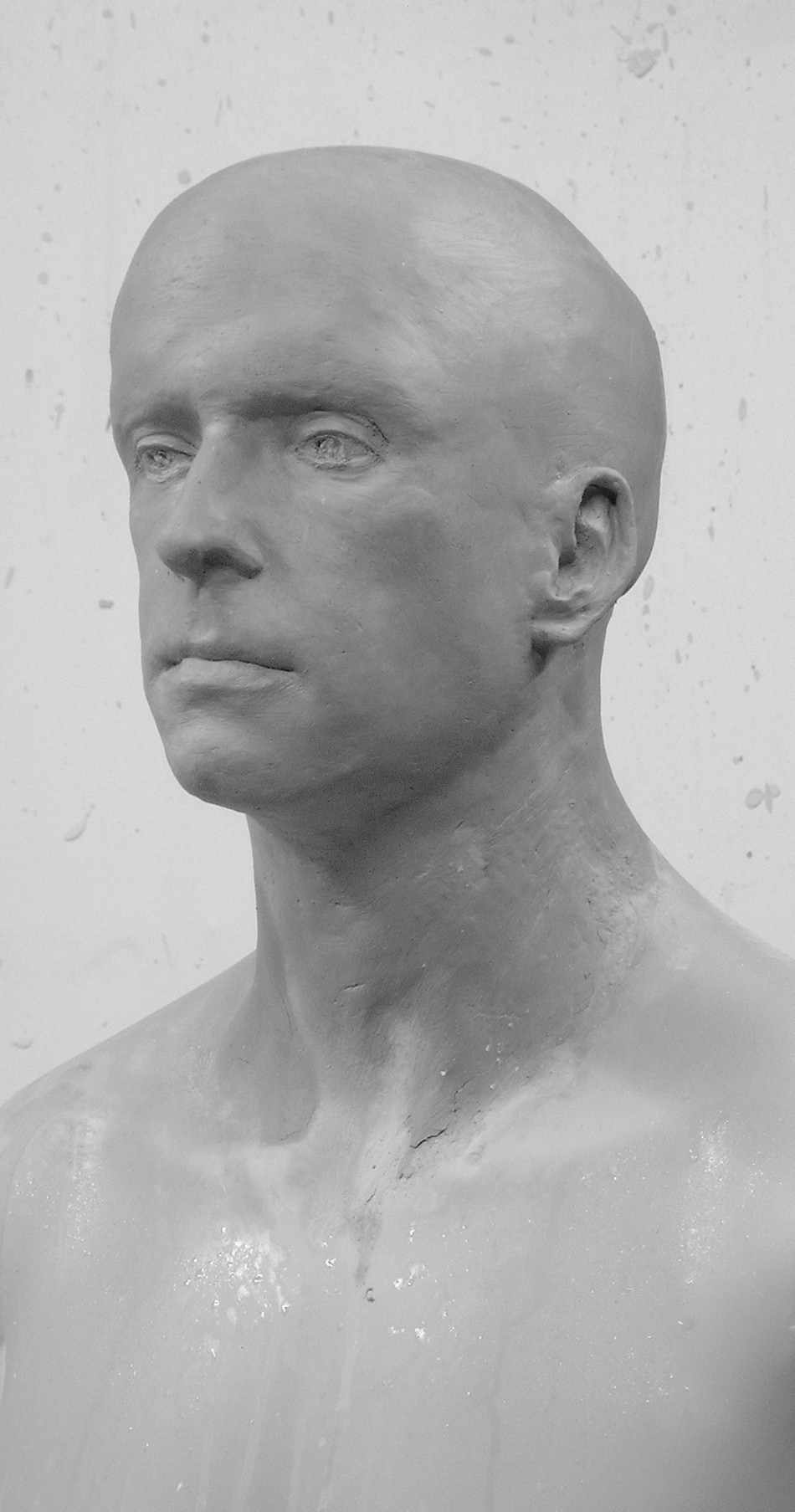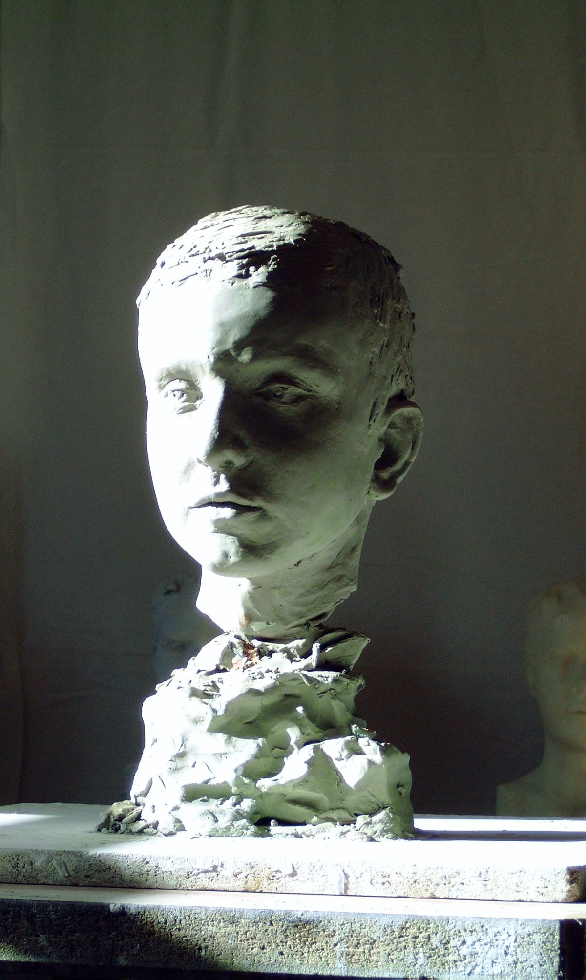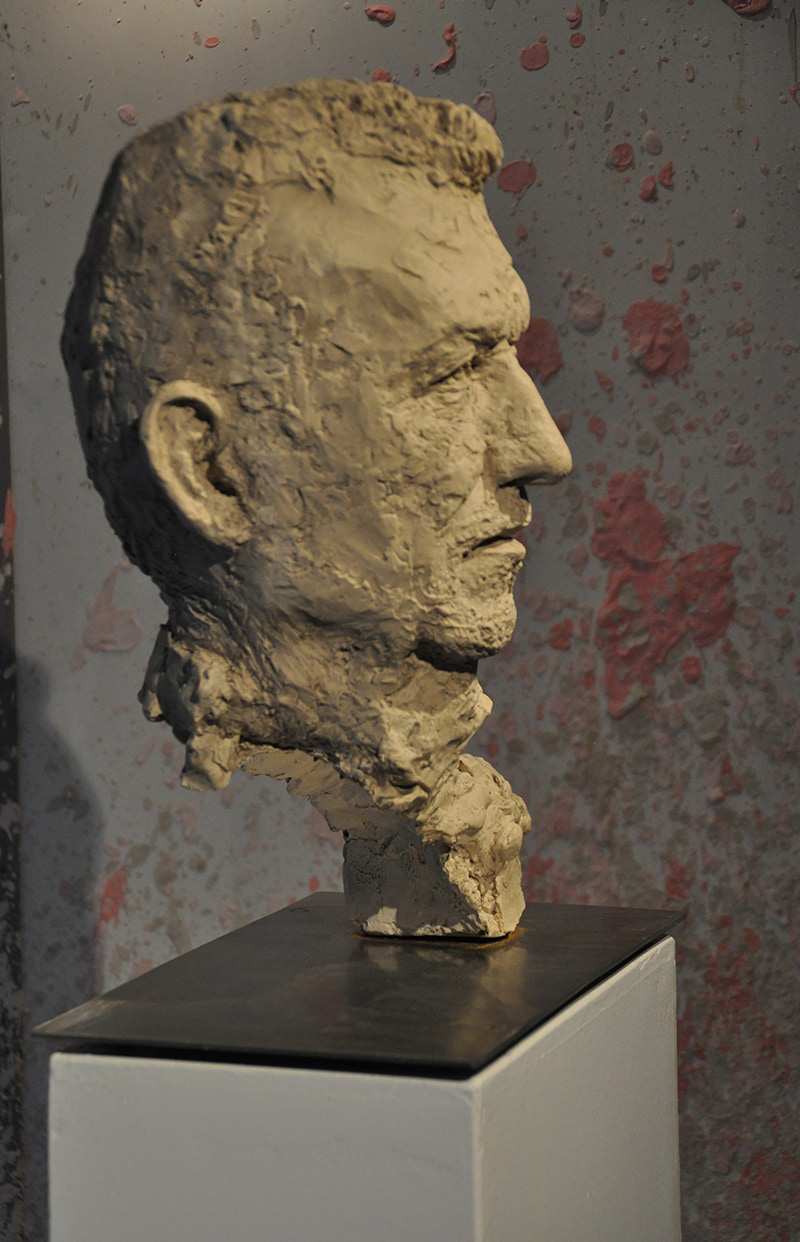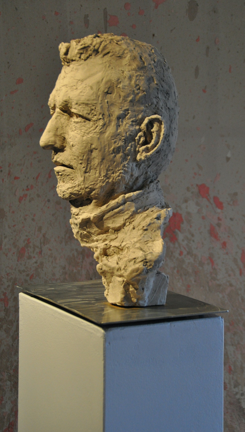 Gelegentliches Modellstehen ist da natürlich wie stets vergnüglich und anspruchsvoll und sowieso eigentlich unabdingbar. Es gilt neben der Form die Erlebnisse in ein plastisches Psychogramm zu fassen. Spannend etwa, wenn die Ohren eines Komponisten, eine so besondere Form entwickelt haben, dass man sich fragt oder sagt: Kein Wunder, dass dieser Mensch ein Musiker ist. Entscheidend immer wieder die Suche nach der perfekten Modellierung und der Komposition, die das eben erwähnte sensibel herausarbeiten und unterstützen soll.