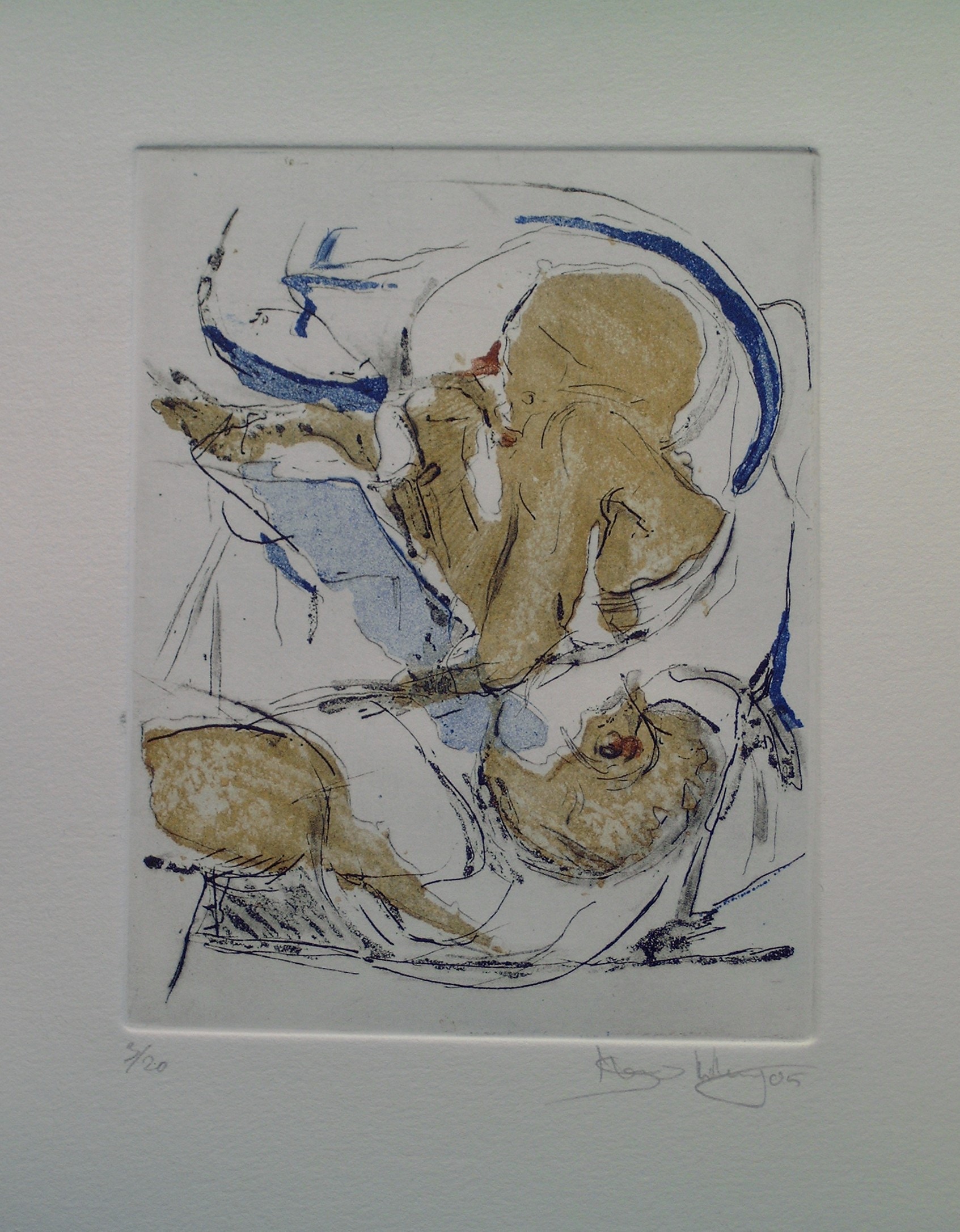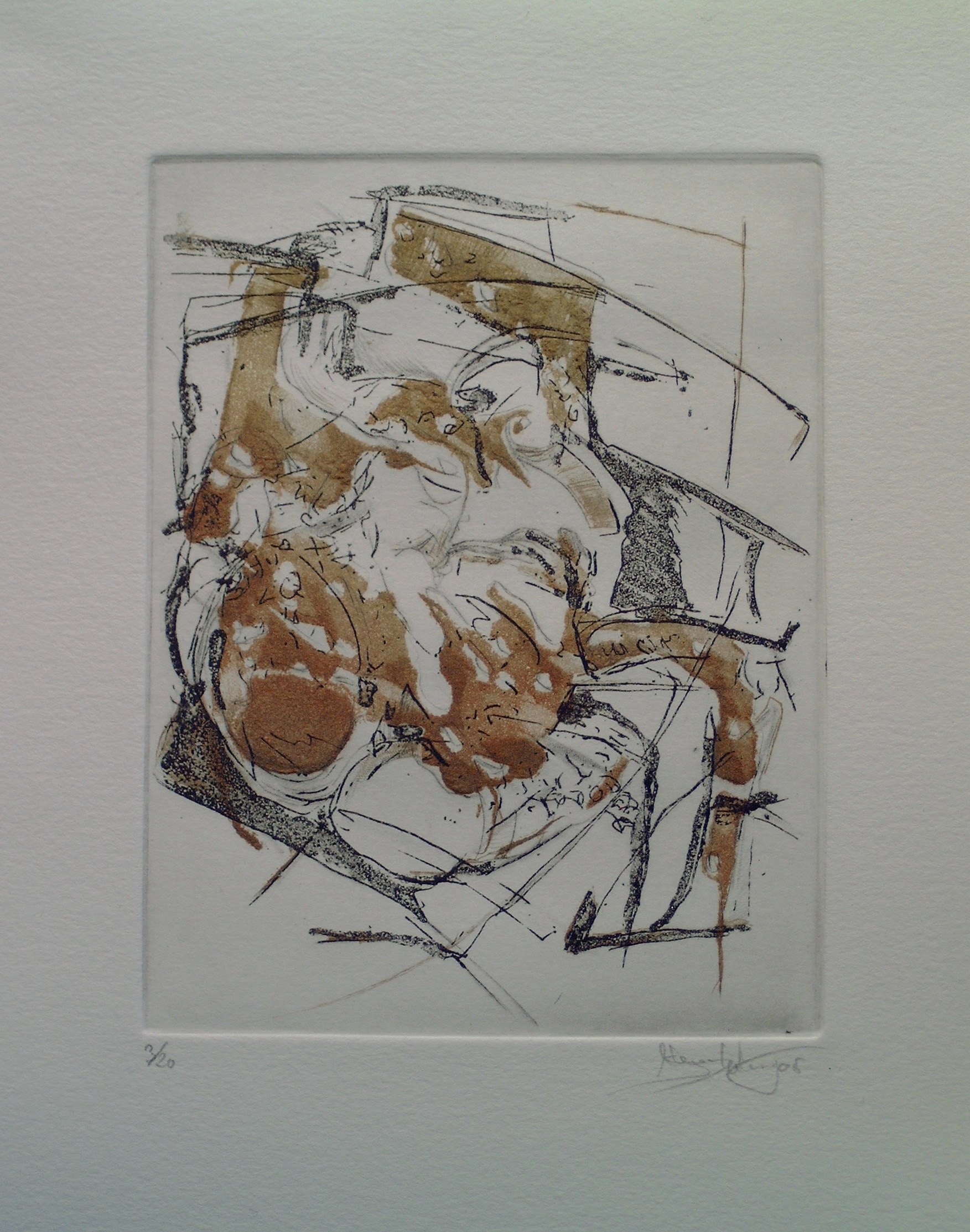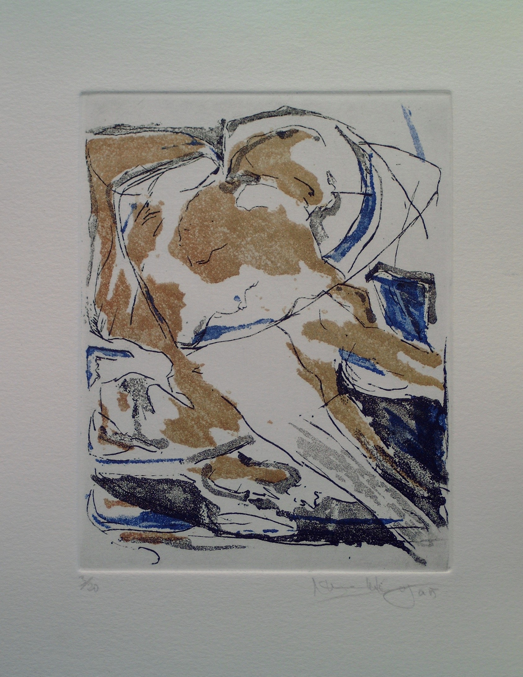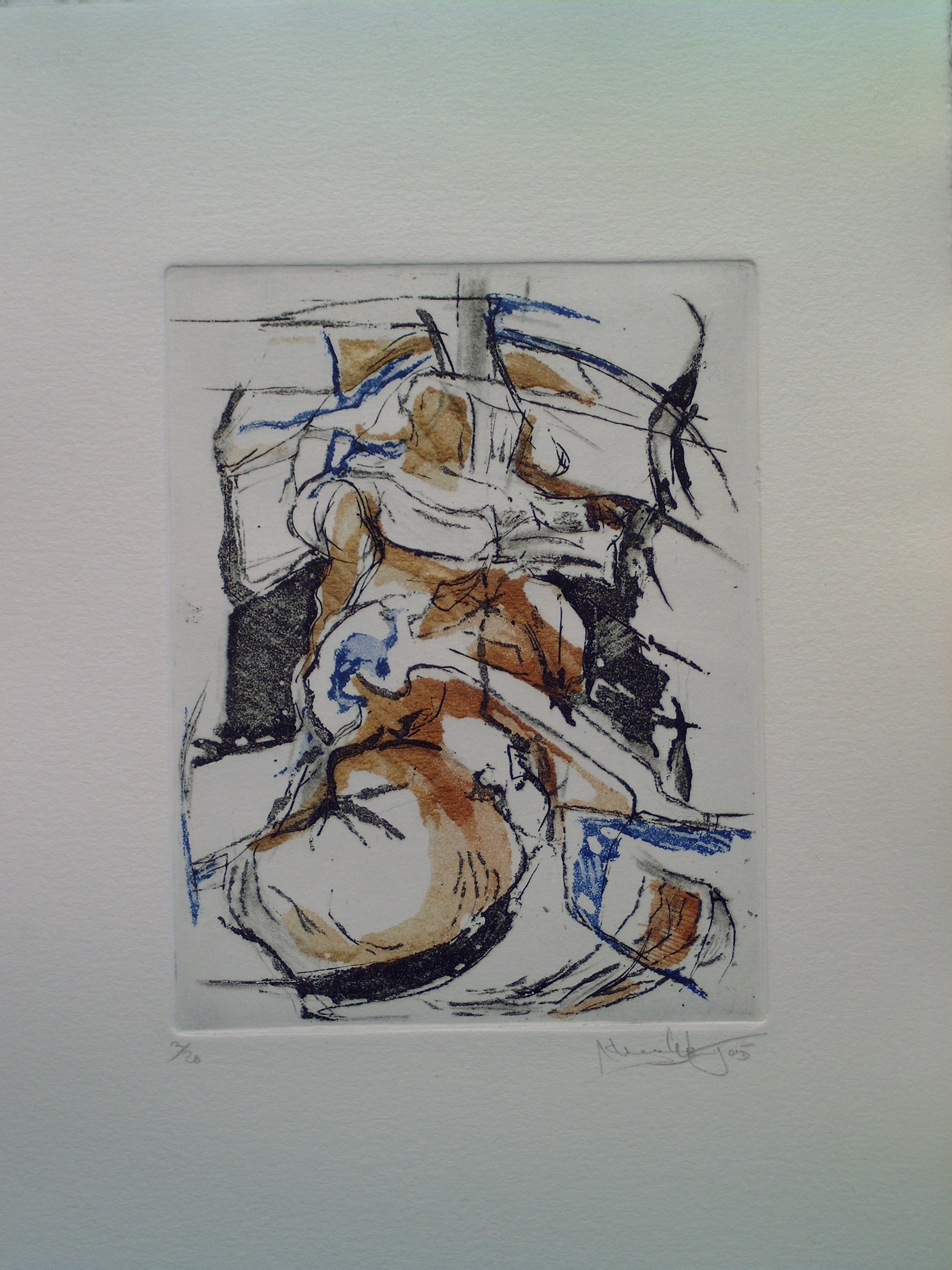 Farbradierung, Strichätzung, Aquatinta, Reservage von drei Platten,
