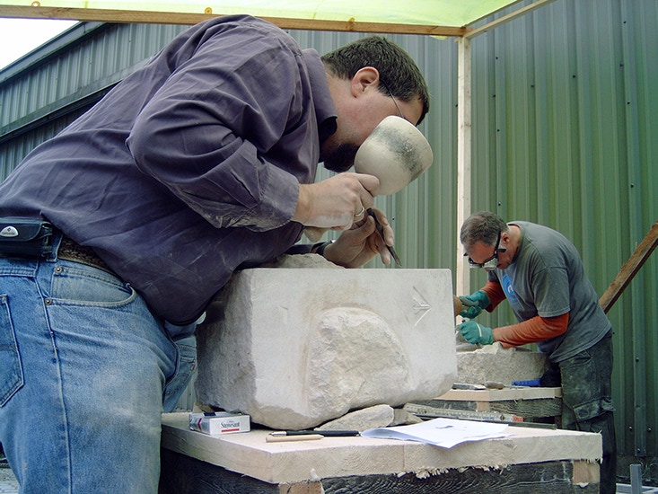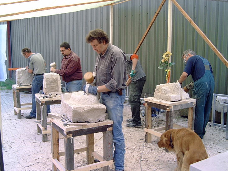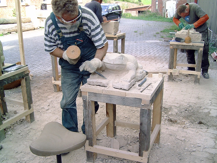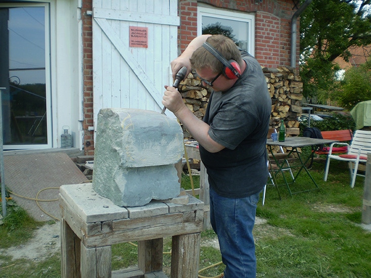 Thematisch ist der Kurs in zwei Kategorien angelegt. Zum einen können Sie bei mir in alter Steinmetz Tradition das Aufarbeiten gerader und rechtwinklig daran orientierter Flächen erlernen. Zum anderen besteht die Möglichkeit anhand eines kleinen Modells, einer Zeichnung oder einer plastischen Idee die Sie mitbringen, dieselbe in Stein umzusetzen.