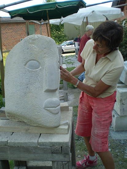 Als Material steht Ihnen ein Steinblock in der Größe von ca. 45 x 45 x 25 cm zum Beispiel aus Thüster Kalkstein zur Verfügung. Dies ist ein Stein, der auch von ungeübten Händen gut zu bearbeiten ist. Den Block behalten Sie nach Beendigung des Kurses selbstverständlich.
