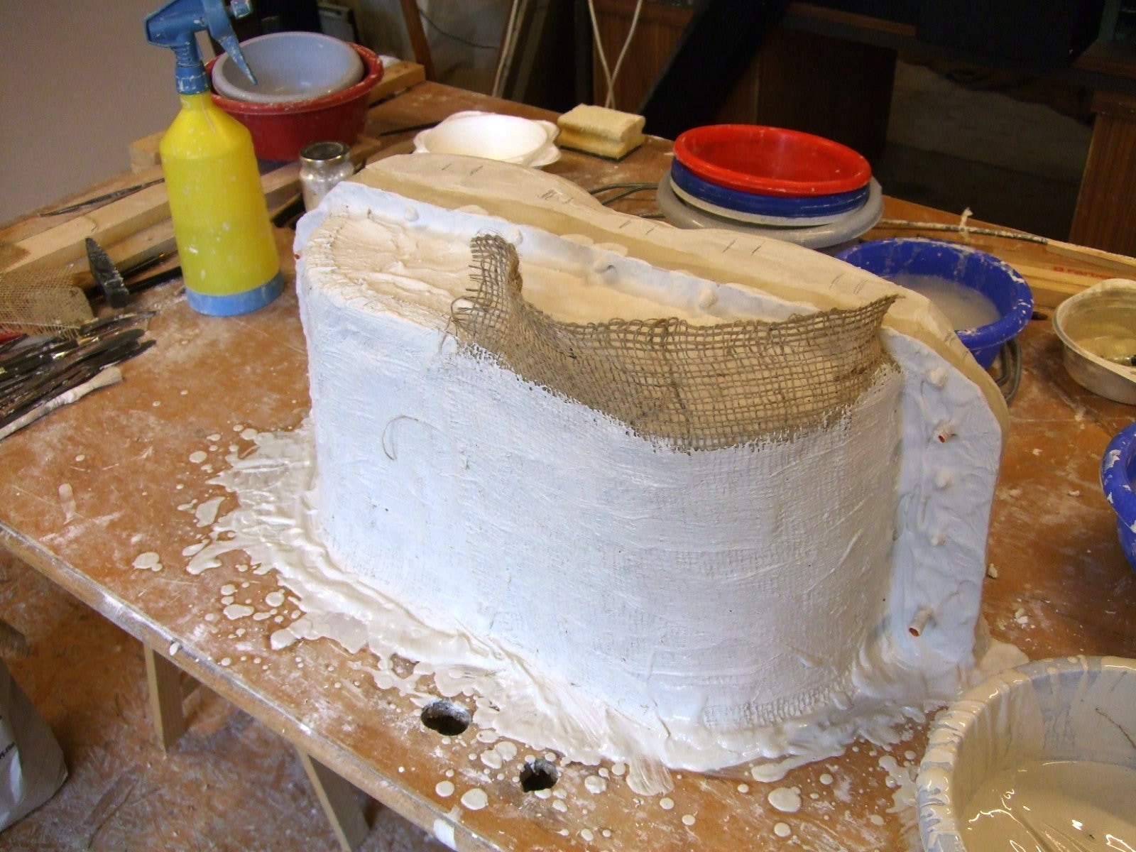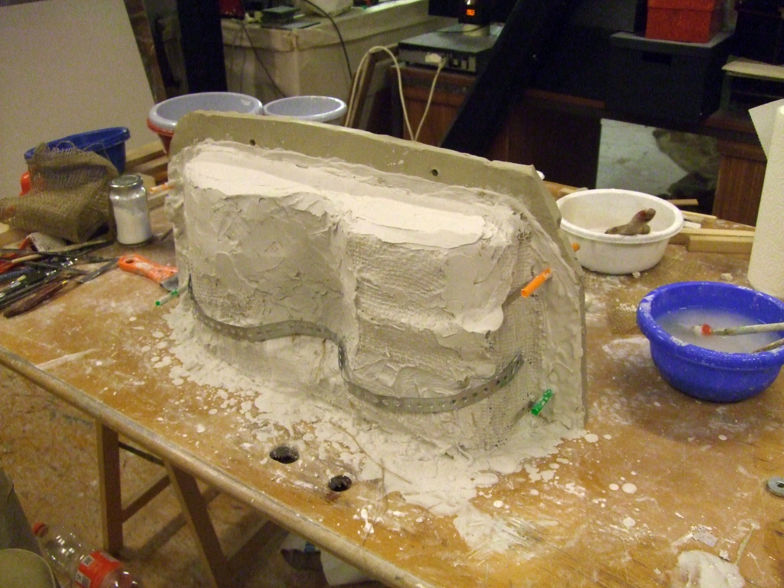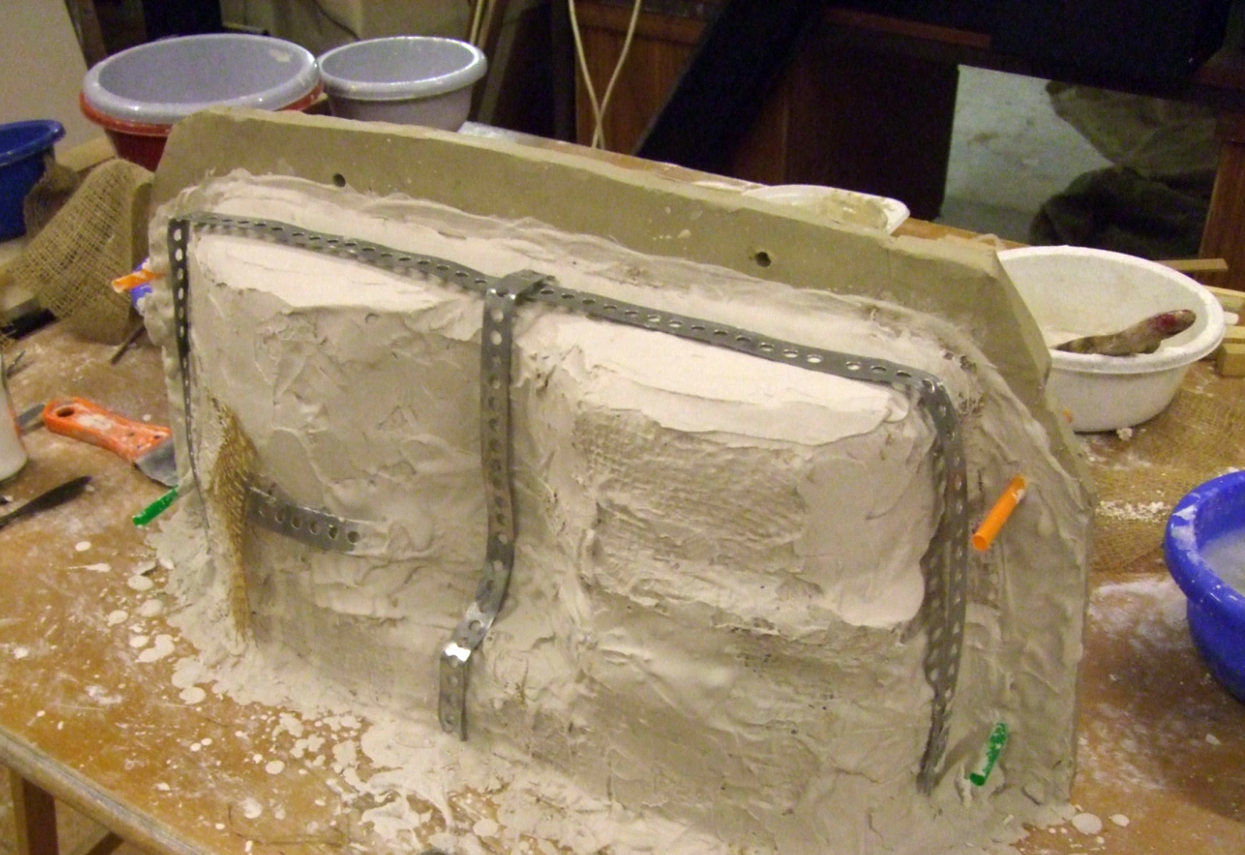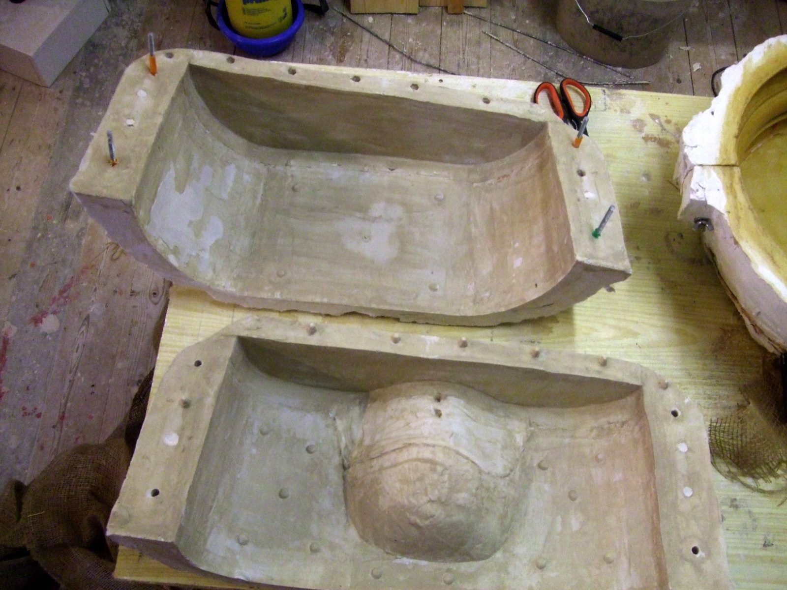 An mich herangetragen wurde die Frage und Bitte zwei Säulen zu fertigen. Sie sollten leicht sein und letztendlich aus zerbrochenen Elementen bestehen. Ich entschied mich für ionische Säulen und zeige erst einmal die Herstellung des Modells, hier des Kapitells, dann die Abformung und das daraus erstellte Positiv.